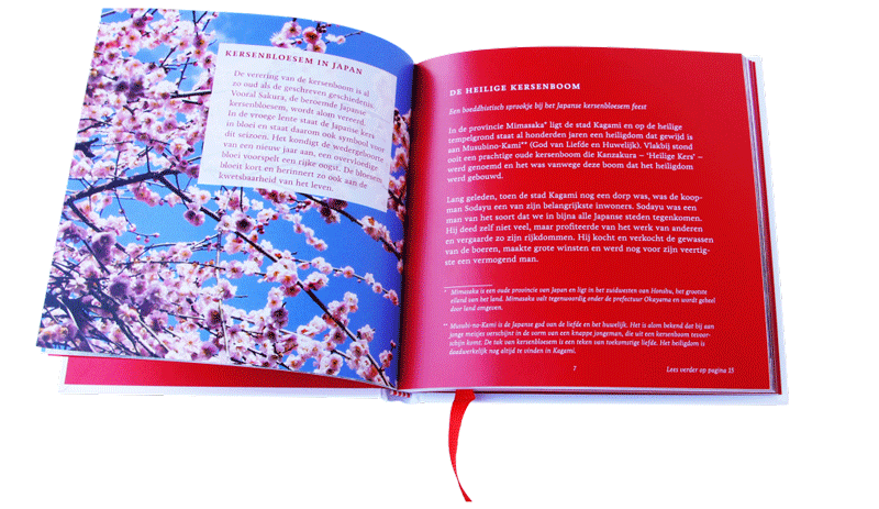 Het Kersenboekje is hét boekje waar alles in staat wat u weten wilt over de kers. Leuke weetjes, een recept uit de 17e eeuw, interessante feiten, de beleving van toen maar zeker ook de kersenbeleving van nu; veel, zo niet bijna alles over dit kleine rode vruchtje vindt u in het Kersenboekje. Met een Japans sprookje, verspreid door het boekje, wordt er een mooie knipoog naar Japan gemaakt, waar kersenbloesem een grote rol speelt.