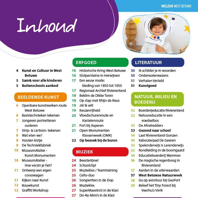 Het magazine staat het vol met activiteiten, aanbieders en maakt het duidelijk hoe groot en belangrijk de cultuursector is in West Betuwe.
