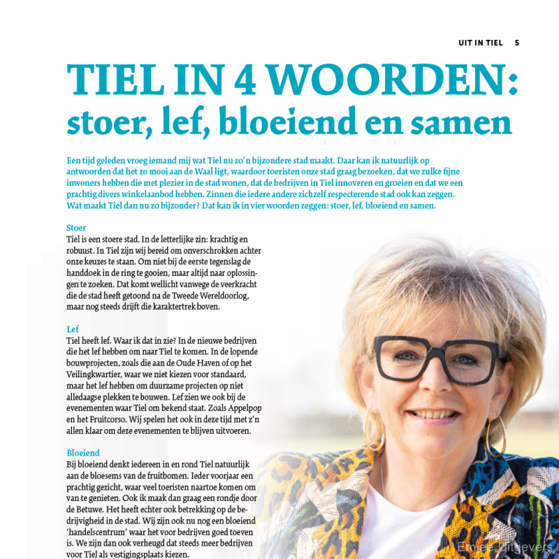 Uit in Tiel is een magazine dat door emjee|uitgevers uitgegeven wordt